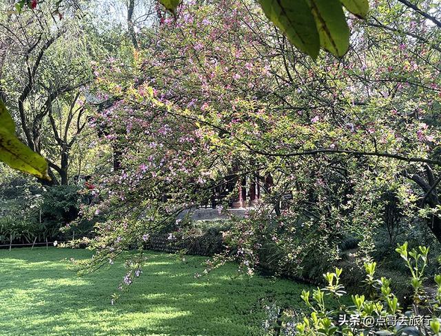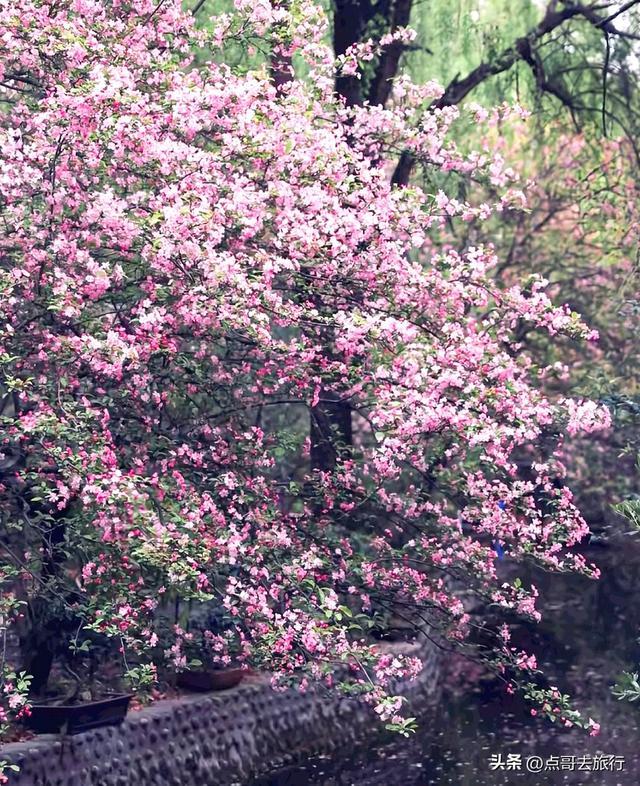 赏花点位:北门海棠馆、春波桥、南门入口湖边(熏风桥)、听涛轩周边;