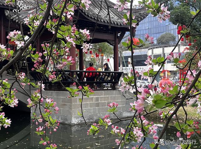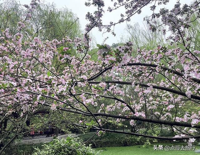 棠湖公园的垂丝海棠,秒在花与景相融,绝非是单纯的赏花。飞檐翘角的亭台楼阁、古朴的石桥、高耸的熏风塔,与粉嫩的垂丝海棠相映成趣。既有江南园林的婉约雅致,又有川西园林的大气舒展,随手一拍都是古风盎然的画面。棠湖公园的垂丝海棠,颜值高、氛围好、不收费,性价比直接拉满。现在正是赏花期,不妨抽个周末在茶香中品味垂丝海棠美。