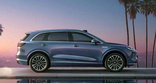 车身侧面部分的整体造型和尚界H5基本一致,差别主要是后视镜、车门下部筋线以及下包围和轮眉部分,这辆这辆名爵MG S6EV使用了黑色轮眉和下包围。